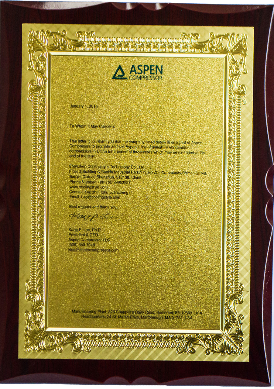 ASPEN壓縮機授權書